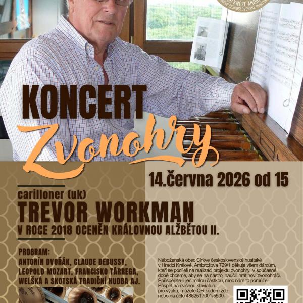 V podání renomovaného carillonéra Trevora Workmana (UK) zazní jedinečný program složený ze skladeb Antonína Dvořáka, Claude Debussyho a Leopolda Mozarta, doplněný o tradiční welšskou a skotskou hudbu. Všechny skladby budou uvedeny v originálních úpravách interpreta.