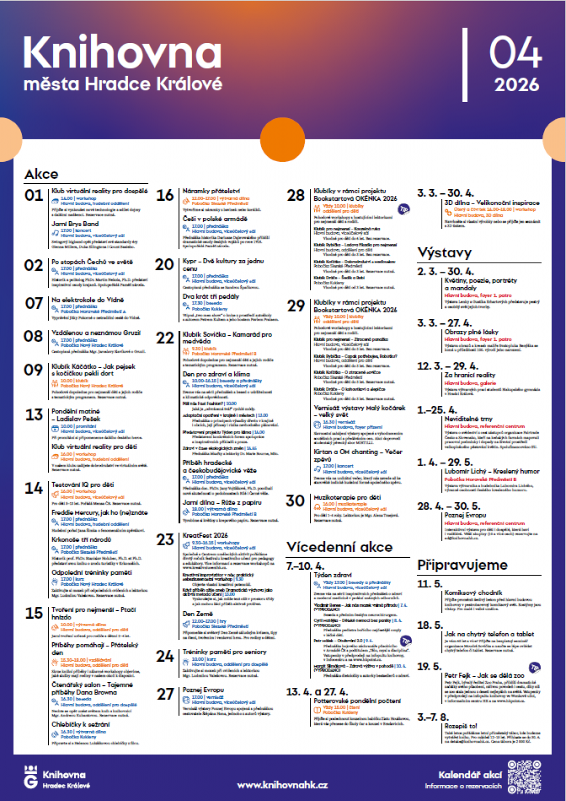 Program Knihovny města Hradce Králové na duben 2026